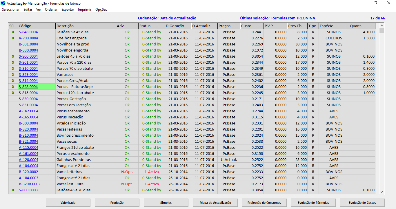 - Acrescentada coluna (visível se selecionado esse critério) com quantidades da MP indicada incluídas em cada fórmula