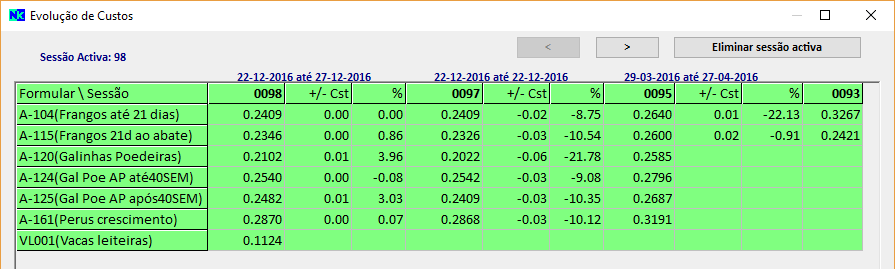 • O quadro da Evolução de Custos, em "Fórmulas/Atualização-Manutenção/<Evolução de Custos>", passa a dispor da possibilidade de utilizar a área de transferência do Windows. Fazendo a sequência Ctrl+A Ctrl+C todo o conteúdo do quadro fica disponível para ser colado em, por exemplo, uma folha de Excel