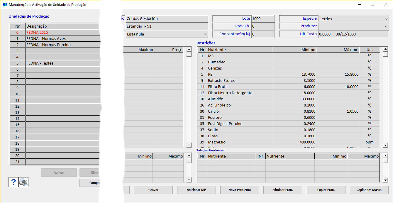 - Criadas unidades de produção específicas para as normas Fedna "Aves" e "Porcino"